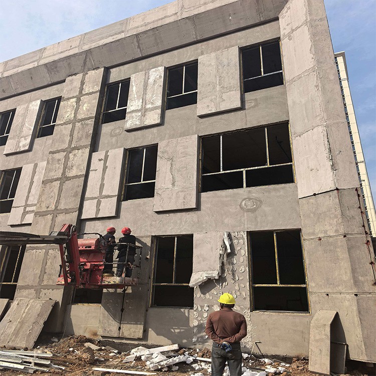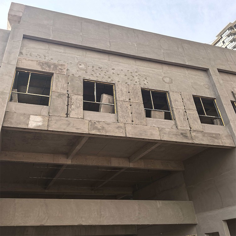 原来EPS线条单位施工材质达不到A1级防火等级,后续我司进场重新拆除EPS线条,安装GRC材质板施工中